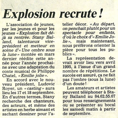 C’était le 18 mars 1995, à 20h30. Une représentation tout public qui a réuni plus de 700 personnes.